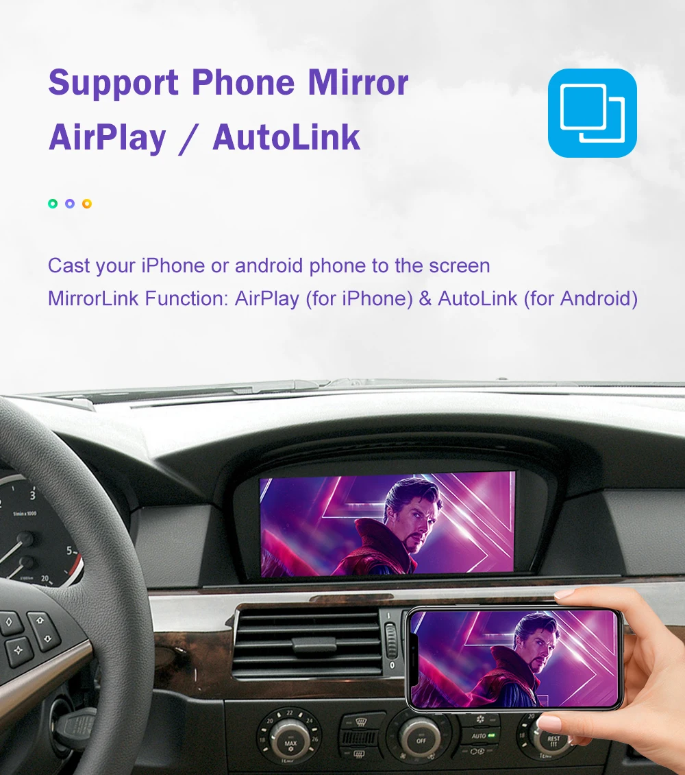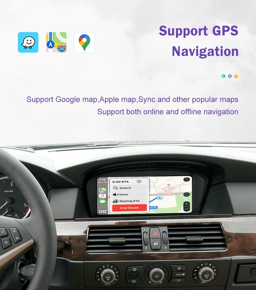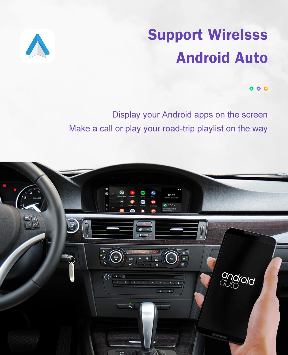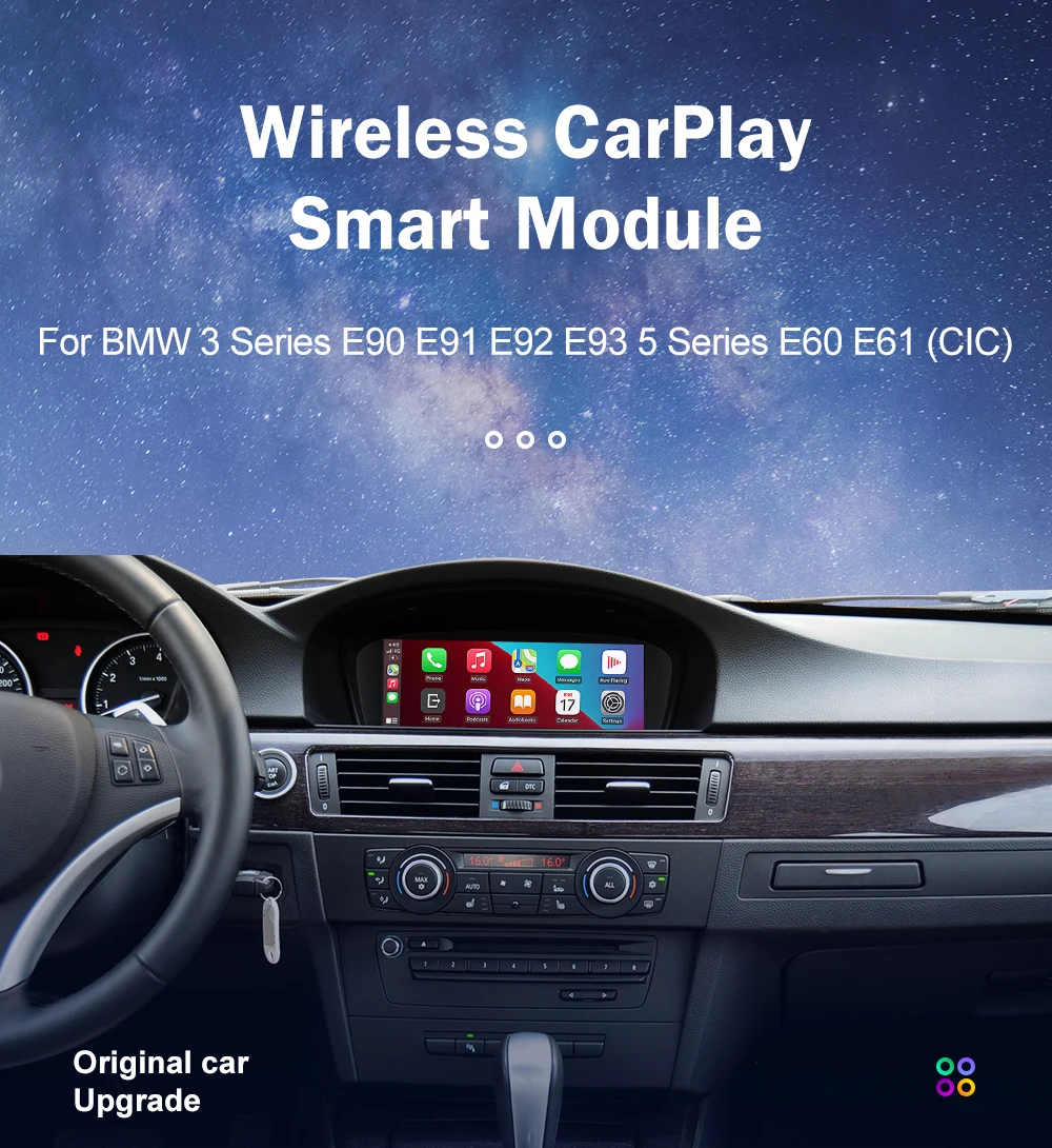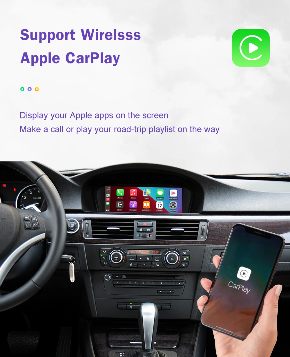 Wireless CarPlay for BMW 3 Series E90 E91 E92 E93 5 Series E60 E61 2008-2013, with Android Auto Mirror Link AirPlay Car Play