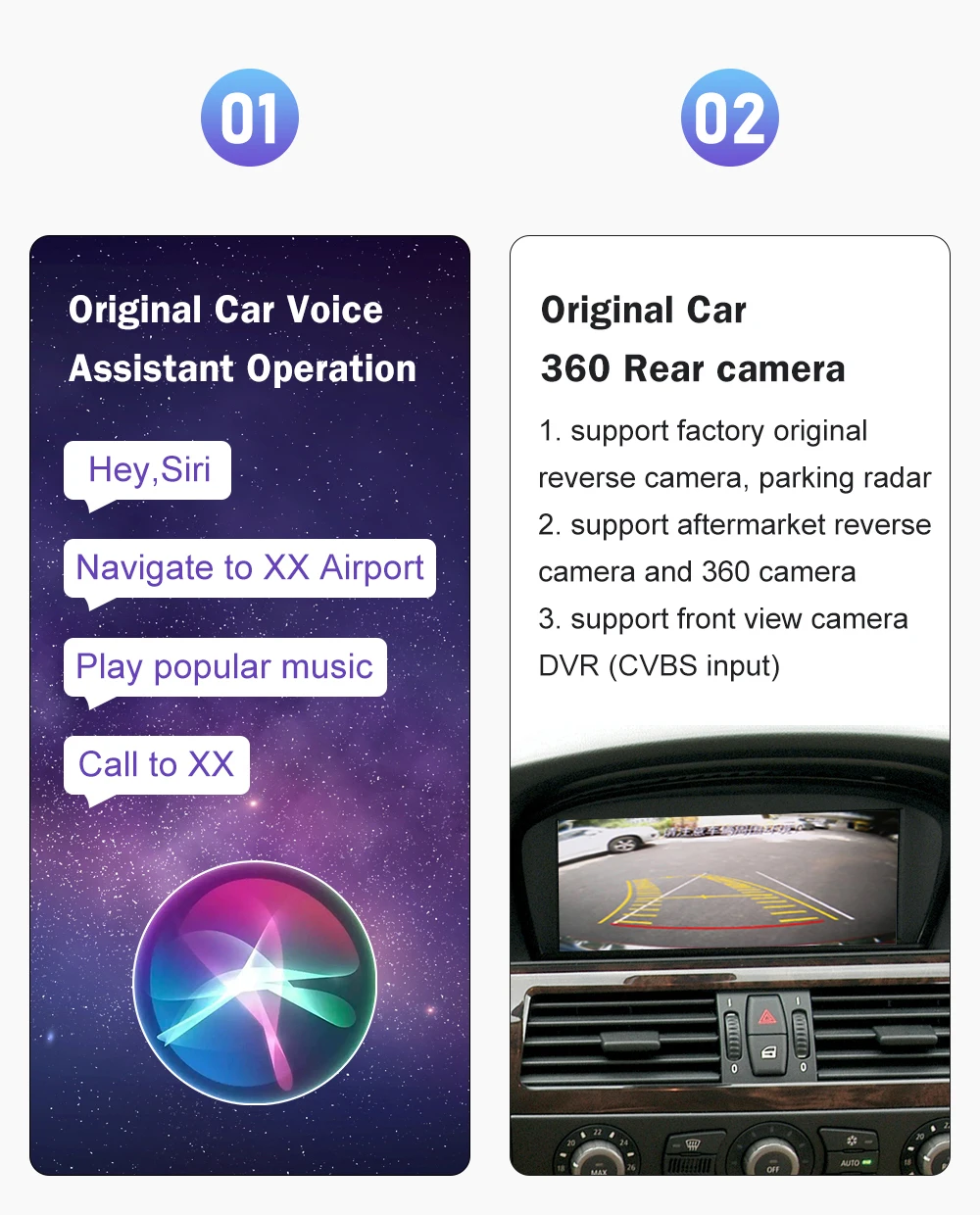5) Support aftermarket rear view & DVR & 360 camera input