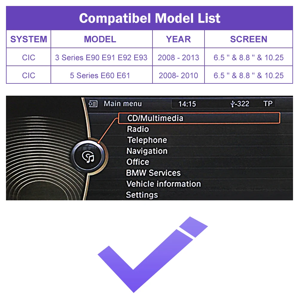 This amazing kit adds full CarPlay functionality to your existing CIC while retaining all the original NBT features.The CarPlay system supports button and steering wheel control and is integrated with the console or glove box USB.Whether your CIC system is factory-equipped with navigation, phone module or Bluetooth, whether it's Apple Maps, Spotify, making/receiving calls or using Siri to reply to text, the system fully supports Apple systems and phone features.
